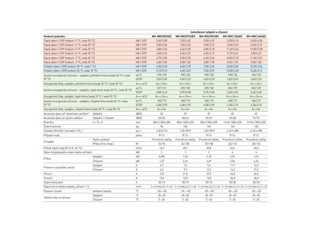 - Akustický tlak při plném zatížení (vytápění / chlazení) - 72/71 dB(A)